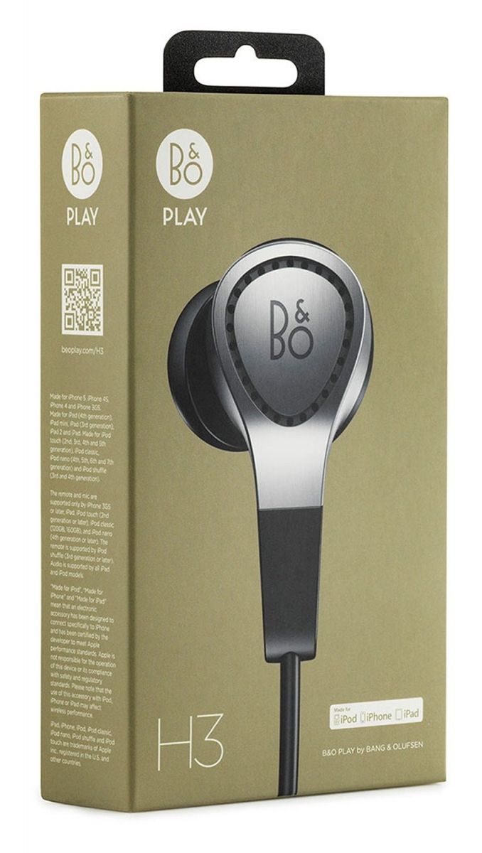 B&O Play H3 este o pereche de căşti premium, care se remarcă prin 26 de orificii speciale cu rol de trecere a aerului si care permit o transmitere excelentă a sunetului, scăderea greutăţii şi creşterea comfortului. Corpul e fabricat din metal, cauciuc şi polimer, iar căştile cântăresc doar 16 grame. E încorporat şi un microfon, iar designul a fost creat de către Jakob Wagner, cunoscut pentru premiile sale Red Dot şi iF, fiind un nume mare în zona de design industrial.