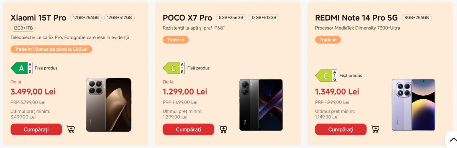 - Redmi Note 14 Pro+ 5G gold la doar 1899 lei, redus cu 800 lei (zilnic între orele 19-24, în weekend și în zilele de sărbătoare)