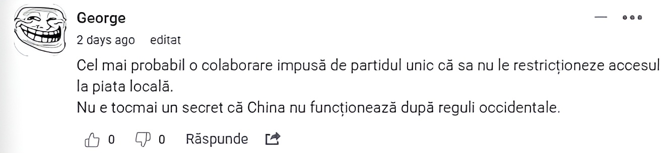 Avem și un cititor vigilent care a „simțit” încă din timp că acest lucru s-ar putea întâmpla cu BOE. George a lăsat un comentariu cu privire la „colaborarea” exclusivă dintre Apple și BOE Technology în urmă cu două zile, pe când abia aflam că firma chineză va fi responsabilă cu aprovizionarea de panouri pentru iPhone-urile Pro și Pro Max vândute exclusiv în China.