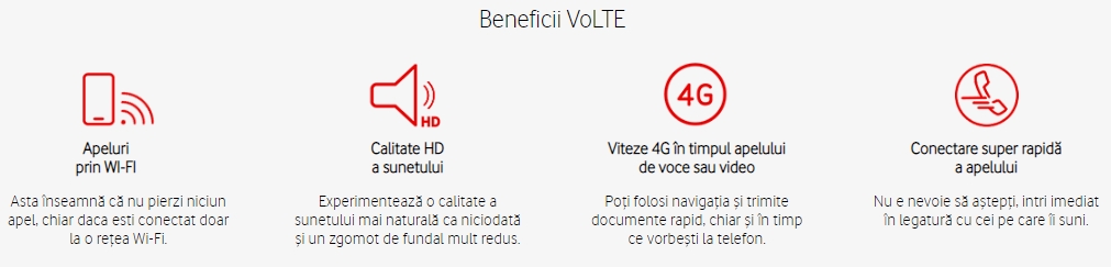 Ca un reminder, aflați că VoLTE (voce over LTE) permite realizarea unui apel telefonic prin rețeaua 4G fără a fi necesar ca terminalul să treacă din rețeaua 4G în cea clasică pentru voce, 3G. Ca avantaje avem conectarea mai rapidă, scăderea timpului de așteptare, dar și claritate și calitate îmbunătățită. Se pot realiza apeluri și face trafic de date simultan.
