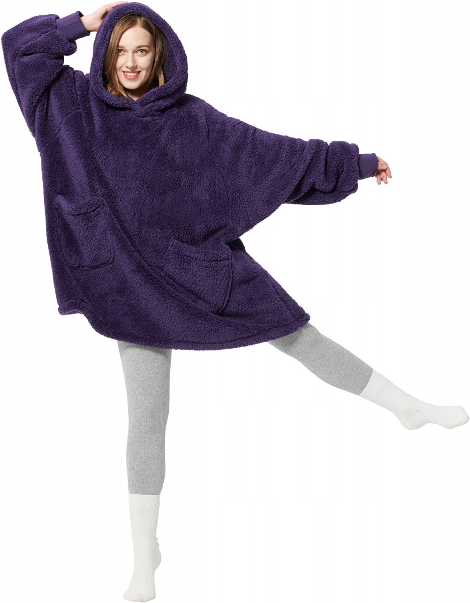 Această „pătură” vine pe mărimile L sau XL și e disponibilă în mai multe culori (negru, albastru, gri, violet, roz, roșu etc.). Pe site avem și un ghid pentru alegerea mărimii în funcție de înălțimea purtătorului. Am remarcat și un număr mare de recenzii pozitive, semn că ar putea fi un cadou util și memorabil pentru cei dragi. Poți comanda de aici!
