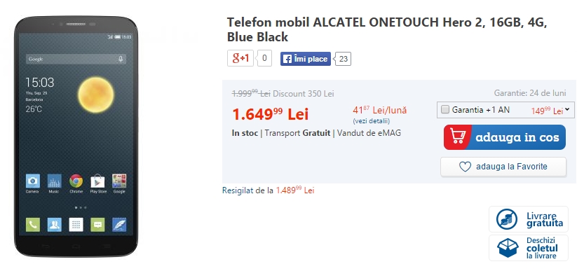 Hero 2 sosește și cu un senzor selfie de 5 megapixeli, o baterie de 3.100 mAh și conectivitate 4G LTE. Prețul său actual este de 1.649 lei. Mai multe reduceri din noua campanie eMAG pot fi consultate aici.