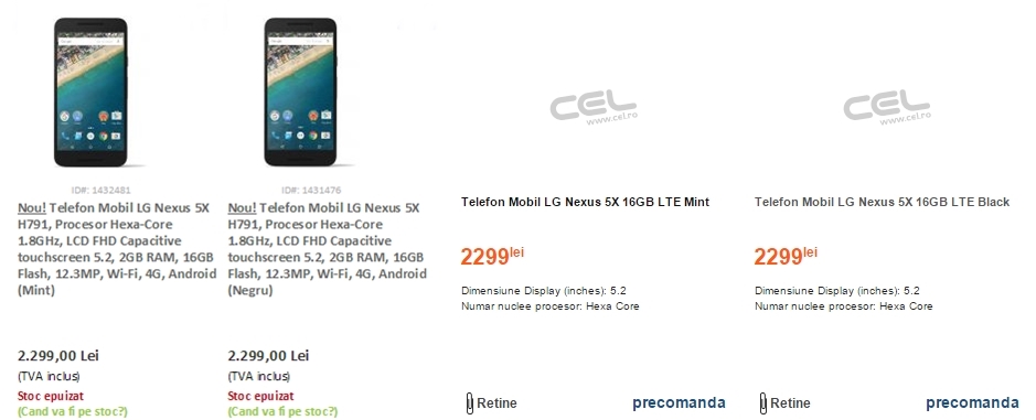 Aflați că ambele magazine listează produsul la prețul de 2.299 lei, sumă destinată versiunii cu 16 GB memorie internă. Spațiul de stocare este foarte mic în situația în care telefonul nu sosește cu slot microSD, și astfel suntem nevoiți să apelăm ulterior la servicii de stocare în cloud ca și Google Drive.