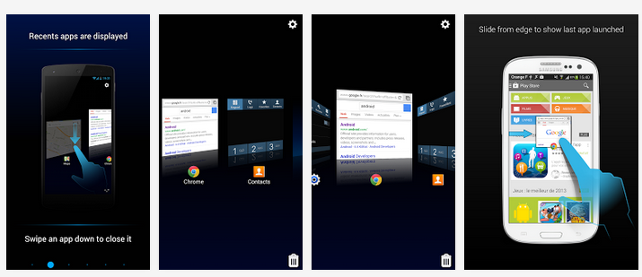 Când configurațiile hardware ating limite nebănuite și puterea de procesare crește pentru a spulbera orice neajuns, multitasking-ul nu mai este o simplă opțiune, ci o necesitate fără de care nu ne-am imagina utilizarea sistemelor de operare mobile. Revenind la Android, în calitate de deschizător de drumuri în acest sens, creația dezvoltatorului Jérémy Kabiche, denumită Fancy Switcher ne oferă toate motivele să ne bucurăm de existența unor astfel de soluții. Aplicația propune, conform unui stil deosebit de bine implementat, trecerea de la o aplicație la alta prin simpla tragere din colțul desemnat, a imagini aplicației (-ilor) rămasă (-e) în background.
