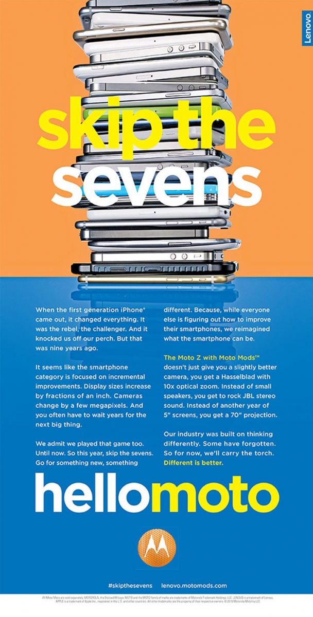 Unul dintre ei a afirmat că s-ar vedea folosind toate 3 modulele, lucru care nu cred că l-a spus cineva despre LG G5 spre exemplu. Mai mult Moto are şi o campanie prin care ne îndeamnă să sărim peste "7", adică Galaxy S7, iPhone 7 şi Note 7. Excelentă poziţionare, dacă mă întrebaţi pe mine.