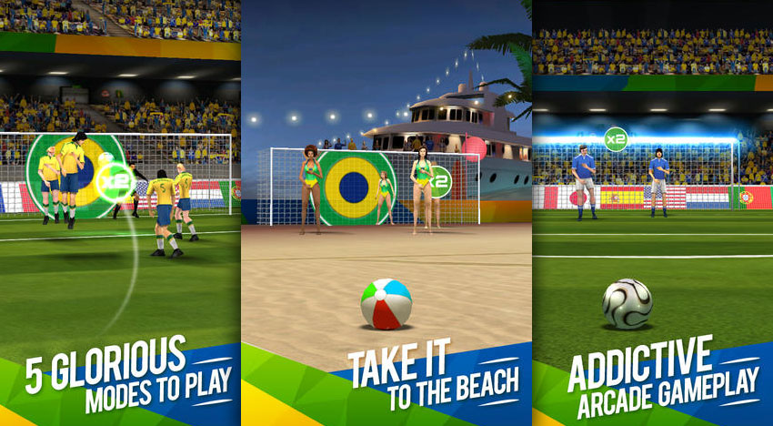 El este un simulator de lovituri libere, deși simulator e mult spus în acest caz. Jocul e asociat Cupei Mondiale care tocmai s-a încheiat și va permite să trageți la poarta făcând swipe de la minge în sus pe ecran. Puteți regla și ținta făcând swipe în dreapta sau stânga în zona porții, iar după ce ați "lovit" mingea puteți să îi dați un ușor efect cu un mic swipe peste traiectoria balonului. Există și posibilitatea unei mingi curbate, dar acest gest nu e interpretat întotdeauna corect de touchscreen.