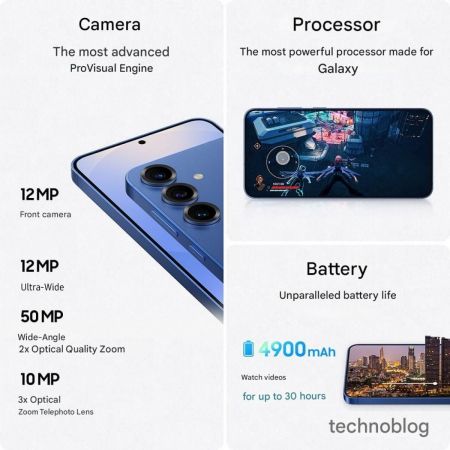 Galaxy S25+ şi S25 vor avea camere principale de 50 de megapixeli, cu zoom 2X direct din senzor, plus o cameră telephoto de 10 megapixeli, cu zoom optic 3X, dar şi o cameră ultrawide de 12 MP. Ambele modele vor avea camere selfie de 12 megapixeli. S25+ are aceeaşi baterie de 4900 mAh ca şi predecesorul, iar Samsung promite aici 30 de ore de playback video.