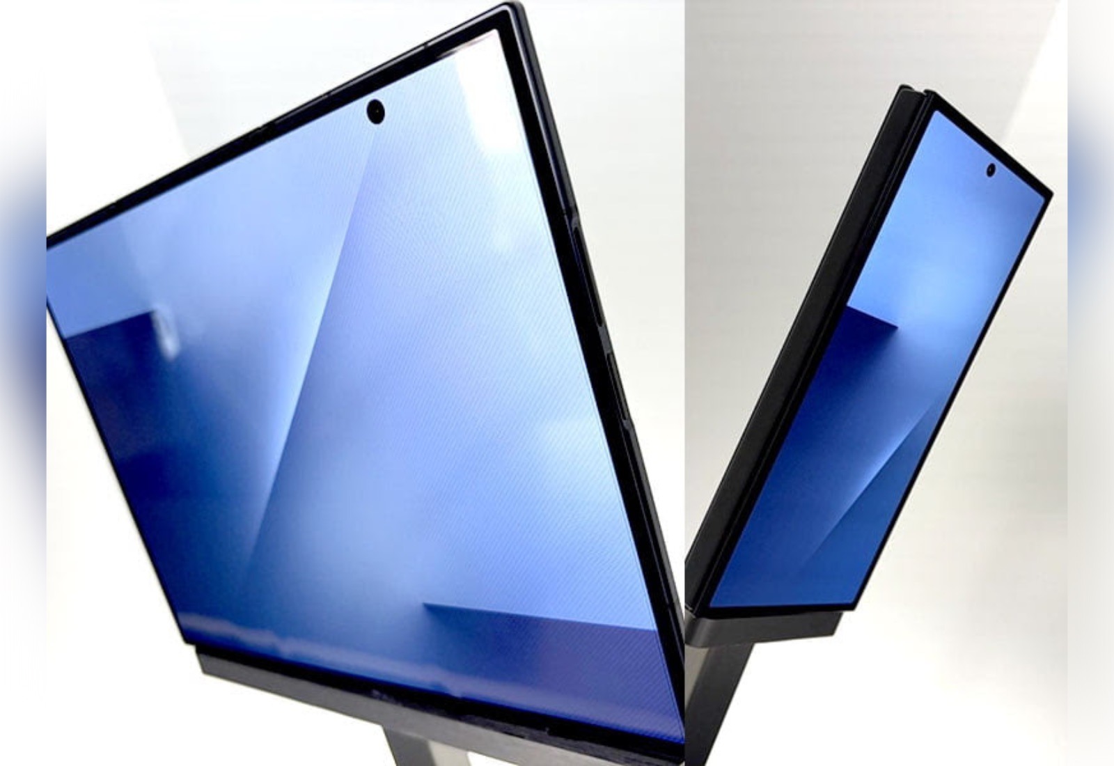 Ce se putea observa la fața locului? Un model complet pliat ce arată aproape ca un telefon normal. Apare și o unitate complet deschisă, cu un display imens care, după estimările curente, se apropie de 10 inch. E vorba, mai exact, de un ecran principal de 9.96 inch în diagonală și un ecran exterior de 6.49 inch, conform surselor. Comparativ cu Z Fold7, TriFold pare vizibil mai gros, ceea ce era de așteptat având în vedere mecanismul ce implică două balamale.