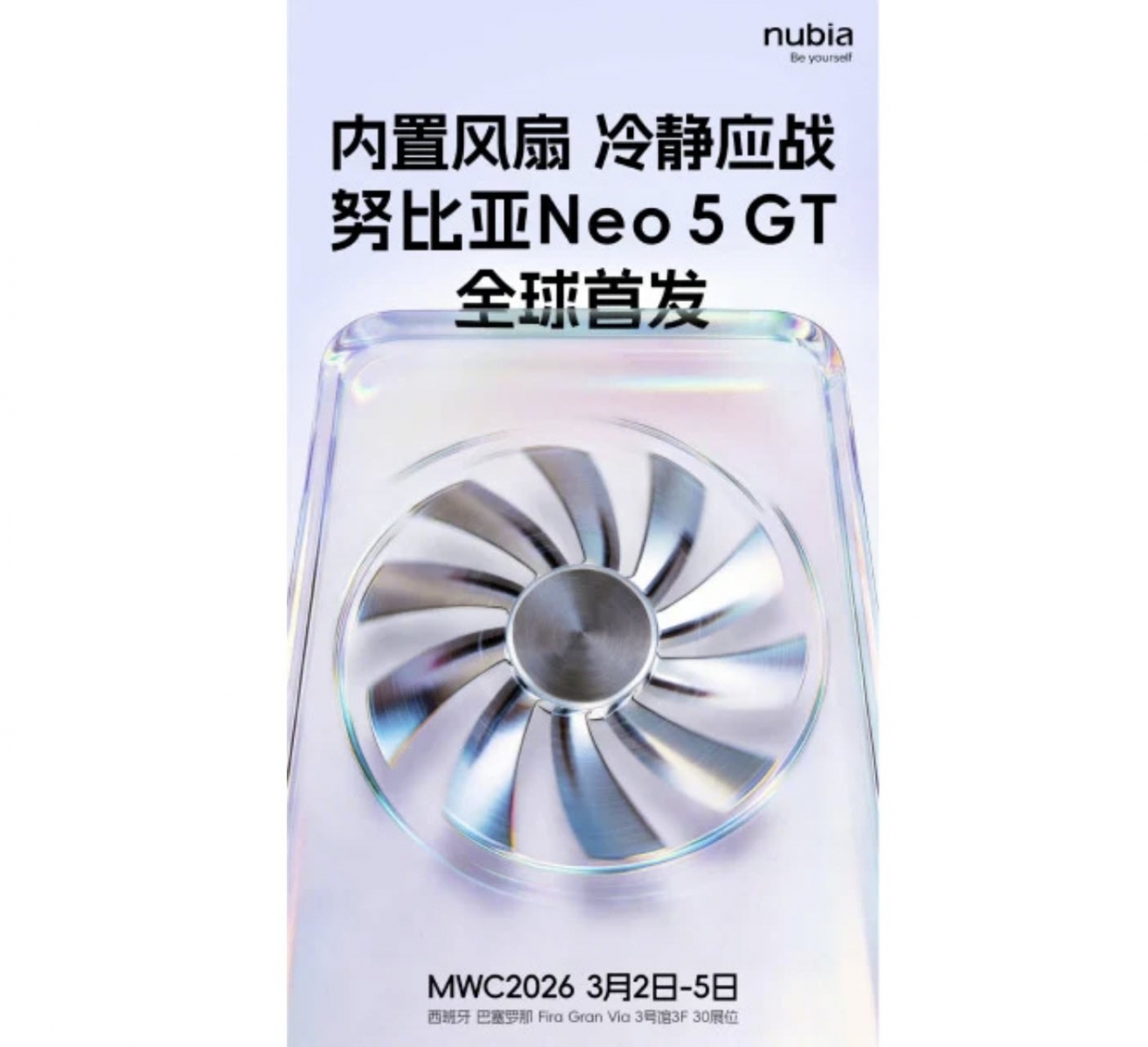 Nubia a confirmat deja prezența la Barcelona, la MWC 2026, unde va aduce și modele Red Magic 11. Va fi totuși și prilej pentru debutul global al lui Nubia Neo 5 GT. Conform teaserelor, el va integra un ventilator, o raritate în ziua de azi, chiar și pentru telefoanele de gaming mai răsărite. Nubia Neo 5 GT vine cu o cameră cu design octogonal și o zonă de iluminare laterală, care se aprinde când te joci.