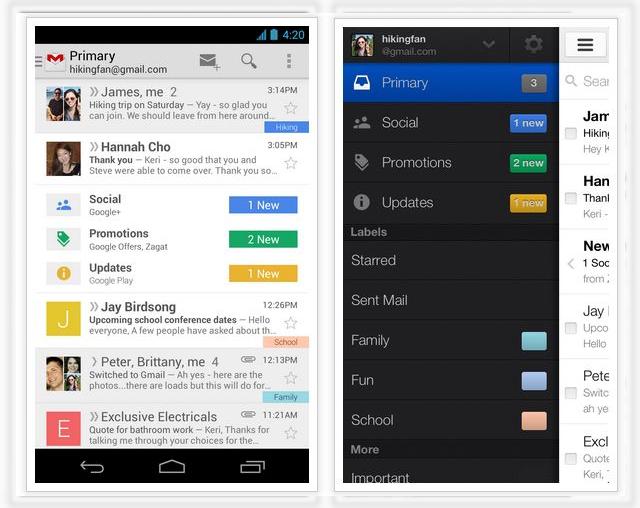 Este oficial! Conform celor relatate prin intermediul Gmail Blog, aplicația va sosi cu o serie de îmbunătățiri în ce privește interfața de navigare. Despre aceste schimbări s-a zvonit încă la puțin timp ulterior evenimentului I/O 2013 și se pare că toate se vor adeveri.