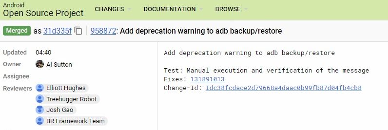 Dacă schimbi brandurile e puţin mai greu. ADB Backup and Restore poate fi util în acest caz, salvând datele private şi aplicaţiile instalate pe PC, ca un soi de "imagine" a telefonului tău (cum cream o imagine pentru CD sau DVD dacă mai ţineţi minte cu Daemon Tools de pe vremuri). Ei bine se pare că Google vrea să scape de ADB Backup după cum indică o linie de cod din AOSP (vedeți imaginea de mai sus).
