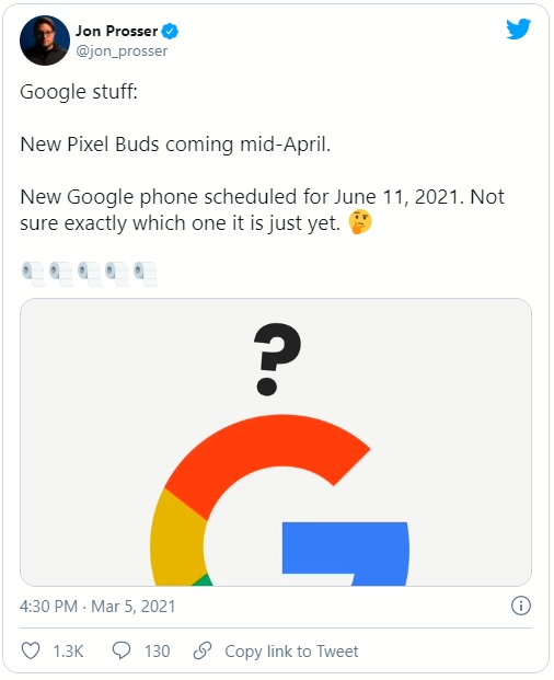 Zvonacul mai dezvăluie faptul că un nou telefon Pixel se va lansa pe 11 iunie 2021. Prosser nu ne oferă detalii despre ce smartphone ar fi vorba. Judecând totuși după modul în care Google a lansat telefoanele în trecut, ar putea fi vorba despre Pixel 5a. În 2020 Pixel 4a și Pixel 4a 5G au avut mai mult succes față de Pixel 5. Astfel, compania ar câștiga timp pentru a dezvolta un Pixel 6 ce ar urma să debuteze undeva în luna septembrie-octombrie.