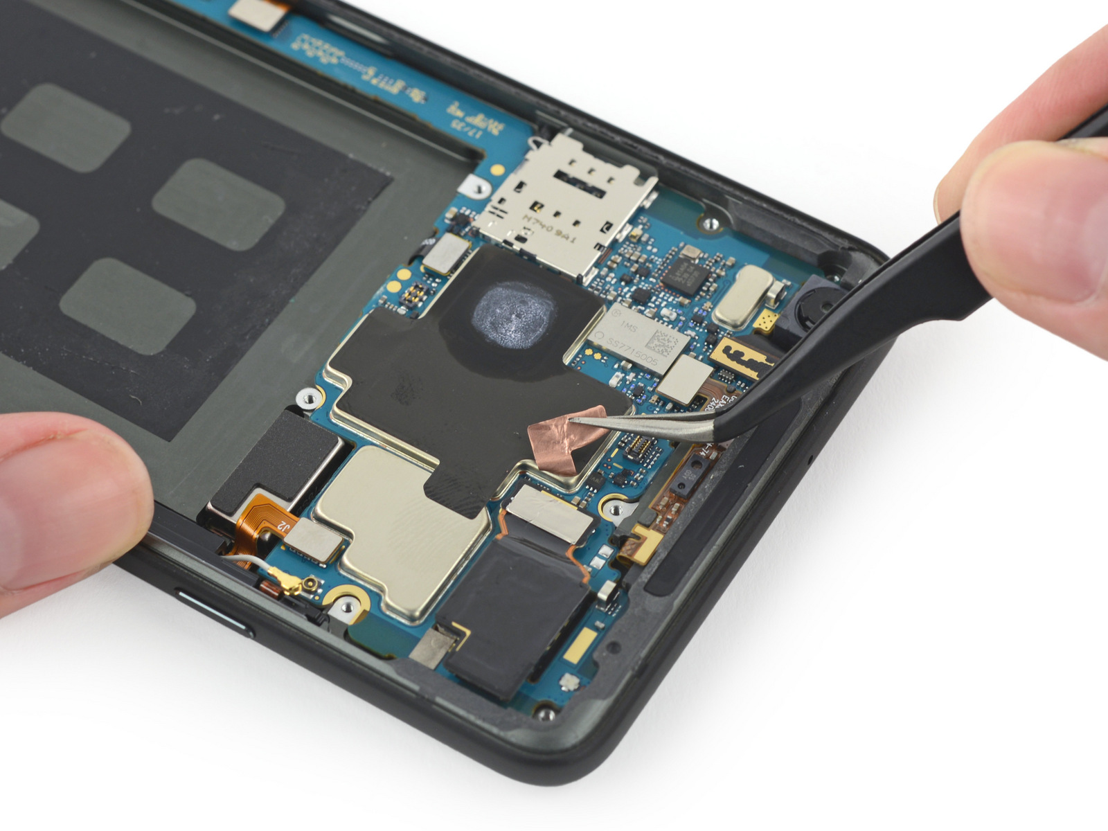 Spre exemplu cablul ecranului poate fi tăiat foarte uşor din greșeală. O altă problemă e cu bateria, care e încastrată prea bine în carcasă şi nu are nici un adeziv uşor de scos. O zonă mediană din magneziu ţine împreună structura centrală a terminalului, oferind şi suport pentru display. Aceeaşi ramă include şi un heat pipe, mecanism special de răcire care nu se regăsea pe modelele Pixel de anul trecut.