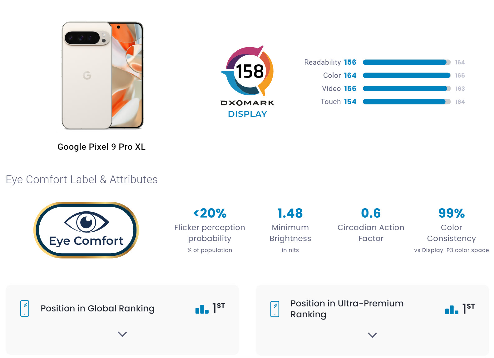 Deja noi am numit "Game Over" competiţia cu alţi rivali, acest Pixel câştigând detaşat, cel puţin la luminozitate. Se duce deja spre 2000 de LUX. Şi la DXO ocupă locul 1 dintre toate telefoanele testate. Are scorul total de 158 de puncte, cu un punct peste locul 2, ocupat de HONOR Magic6 Pro. Pe 3 se află Pixel 9, cu 156 de puncte, apoi Galaxy S24 Ultra, cu 155.