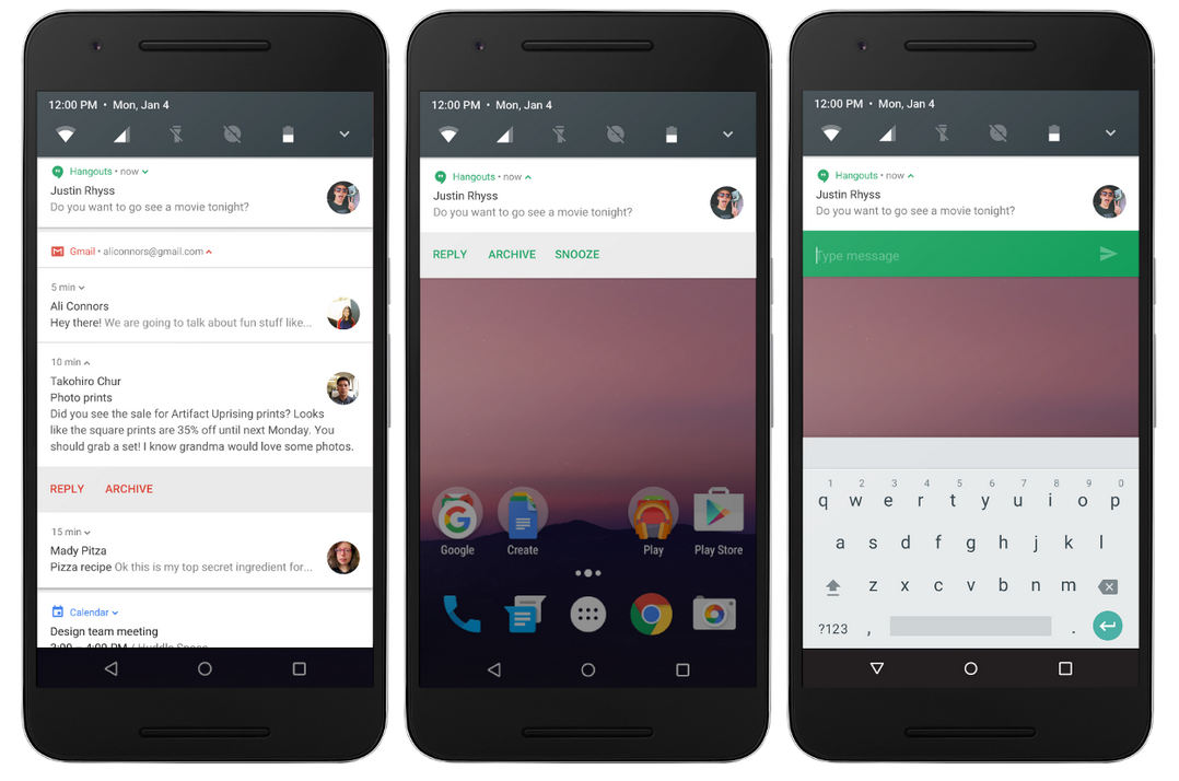 Și centrul de notificări primește un update odată cu Android N, locație unde se remarcă câteva schimbări atât la nivel de design, cât și pe partea de funcționalitate. Vom putea răspunde la mesajele primite direct din lista de notificări, opta pentru afișarea mai multor informații, dar și adăuga până la două pagini pentru shortcut-urile către setările rapide.