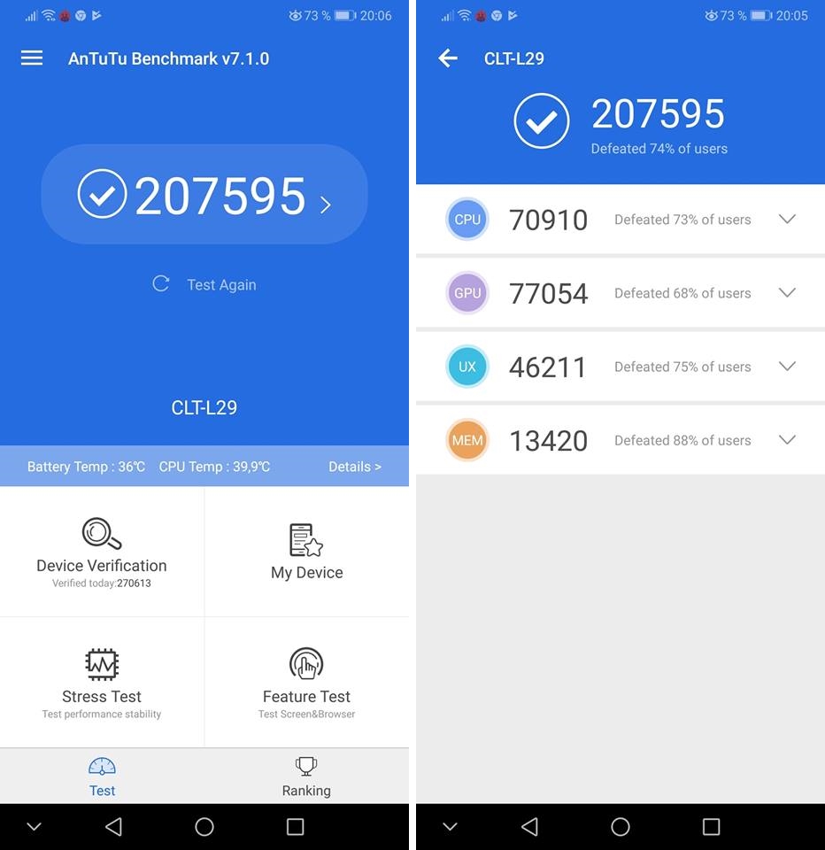 Asta se întâmplă pentru că boost-ul de performanță va fi remarcat doar la rularea de jocuri video pe telefon și nu și în celelalte aplicații precum este cazul lui AnTuTu în situația de față. Așteptăm mai jos impresii legate de GPU Turbo pe Huawei P20 Pro și aflați că cel mai bun preț din acest moment pentru flagship-ul Huawei este de 3.472 lei pe QuickMobile folosind codul QUICK202.