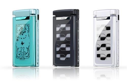 Telefonul Hitachi W61H a fost primul dintre aceste produse revolutionare, folosind un display secundar bazat pe tehnologia E Ink Vizplex, prezent in partea exterioara a handsetului. Popularul designer japonez SeKiYuRiO a conferit telefonului un look similar cu cel al unei sticle de parfum, asta in vreme ce display-ul sau E Ink de 2.7 inchi poate afisa sub forma de animatie peste 96 de imagini diferite. De asemenea ecranul se va activa atunci cand primiti un mesaj/apel, sau cand deschideti clapeta.