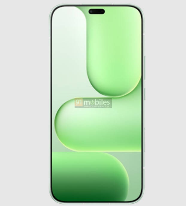 Ecranul telefonului are o rezoluție 1200 x 2600 pixeli (FHD+) și o densitate de aproximativ 520 DPI. Imaginea din listare arată un display plat cu margini foarte subțiri și un decupaj tip pilulă pentru camera frontală. Butoanele de volum și power sunt amplasate pe partea dreaptă, iar modelul prezentat apare pe verde.