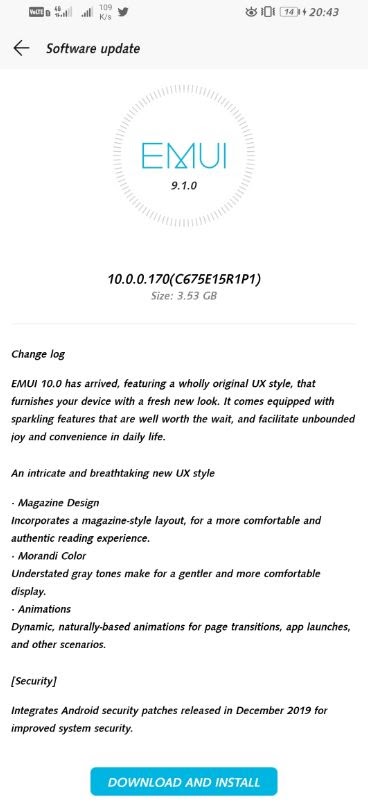 Varianta de soft pe care o primeşte acum este V10.0.0.170 şi ocupa 3.53 GB. Include o nouă interfaţă, mai aerisita şi bine spaţiată, o zonă de Setări mai puţin alambicată şi o nouă interfaţă pentru cameră, cu zoom mai facil. Nuanţa "Morandi", un gri blând face toată experienţa vizuală mai blândă pentru ochii privitorului. Avem şi animaţii mai dinamice, un nou GPU Turbo, tranziţii mai fluide şi un nou sistem de fişiere EROFS în spate, care creşte fluiditatea sistemului cu 20 sau 30%.