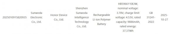 Au tot apărut leak-uri legate de așa-zisul Honor Power 2 online. Pare că telefonul e real și va debuta în China în următoarea perioadă. Concret, bateria are o capacitate nominală de 9.886 mAh, dar va fi promovată oficial ca 10.000 mAh (valoare tipică). Va folosi tehnologie Siliciu-Carbon (Si/C), astfel că talia terminalului nu ar trebui să depășească 10 mm.