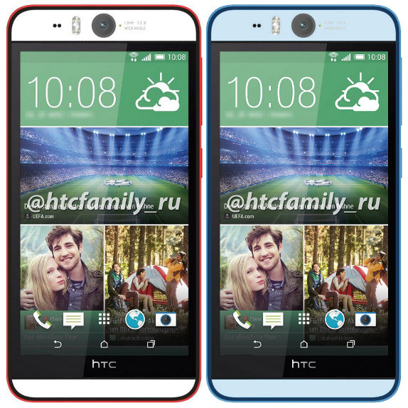 Potrivit ultimelor zvonuri, HTC Desire Eye va debuta în două nuanțe de culoare (roșu, albastru), acestea fiind similare cu cele introduse pe modelul HTC Desire 820, terminal ce a fost lansat în cadrul IFA 2014. Odată cu apariția acestor noi imagine, putem observa mai detaliat camera frontală de 13 megapixeli ce adoptă și un bliț dual-LED.