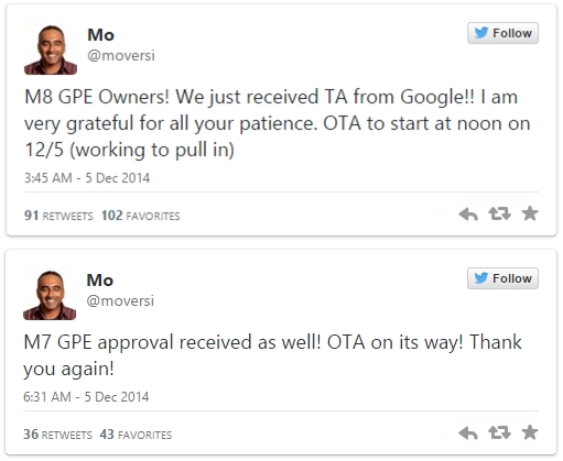De asemenea aflăm și faptul că modele standard One M8, respectiv One M7 vor primi actualizarea la noua versiune Android abia în februarie 2015, moment în care pachetul software va fi distribuit către utilizatori.