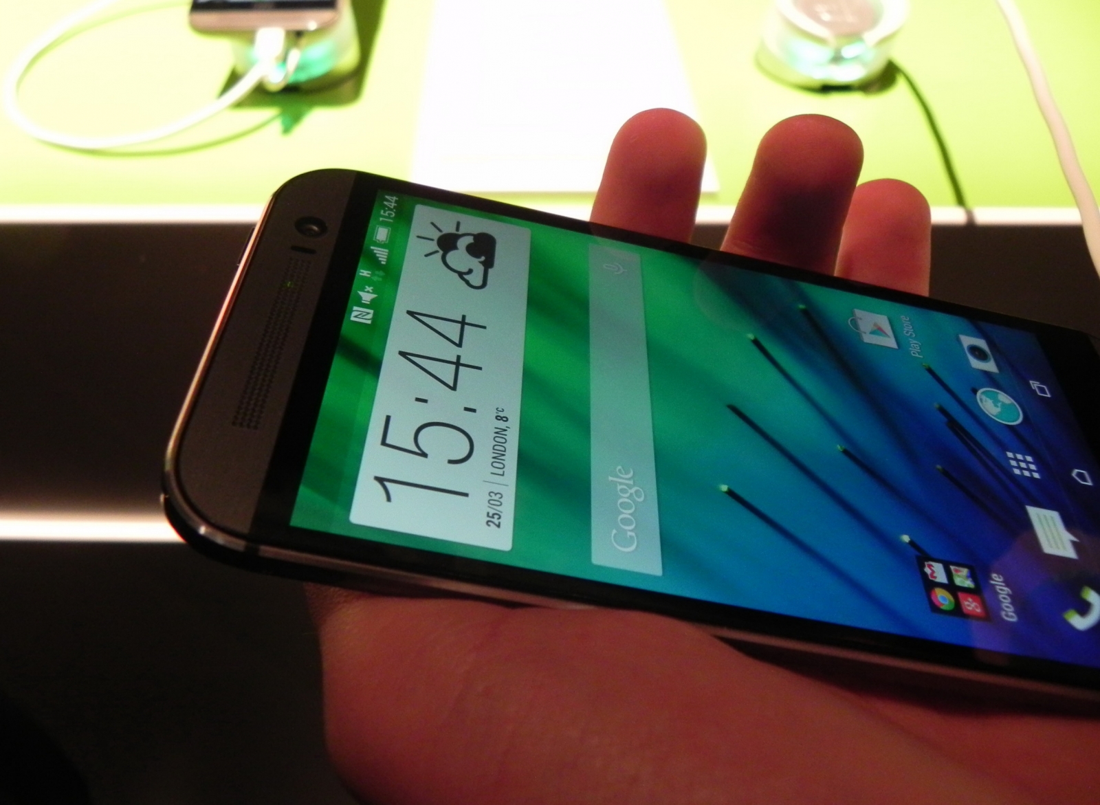 Deși cântărește 160 grame, HTC One (M8) nu dă impresia de terminal greoi, ci dimpotrivă, pare foarte compact, spre deosebire de alte device-uri din aceeași categorie de greutate. Totodată, un lucru pe care trebuie să îl menționez este ecranul de 5 inch, componentă ce nu poate trece neobservată în special datorită dimensiunii și a culorilor și imaginilor ce sunt redate la o rezoluție Full HD, la aceeași calitate ca și în cazul lui HTC One din 2013, adică excelent.