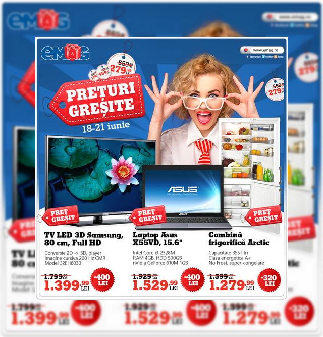 Până acum cele mai bune prețuri pentru HTC One gravitau în jurul valorii de 2.400 sau 2.600 de lei, dar iată că o nouă serie de reduceri de la eMAG.ro fac acest super smartphone să ajungă la doar 2.329 lei. Sub deviza "Prețuri Greșite", eMAG.ro ne mai oferă o serie de reduceri în perioada 18-21 iunie, pe care le aflați mai jos.