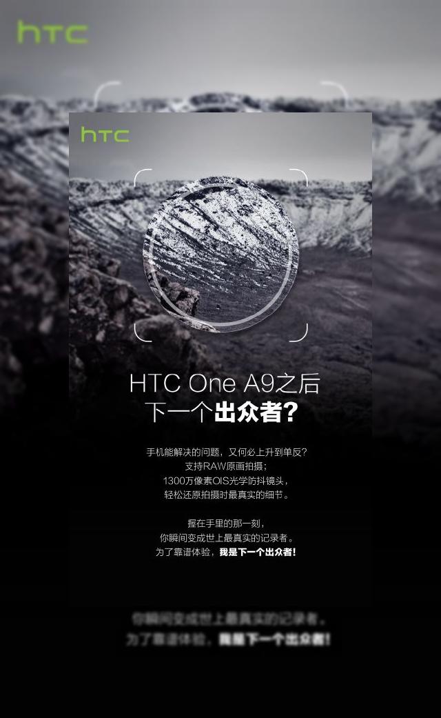 Imaginea de mai sus a apărut pe contul oficial Weibo al celor de la HTC şi face aluzie la un model înrudit cu HTC One A9. El va veni cu o cameră de 13 megapixeli, cu stabilizare optică şi captura RAW. Am fi surprinşi că acesta să nu fie HTC One X9, mai ales având în vedere cât s-au înmulţit scăpările sale în ultima vreme.