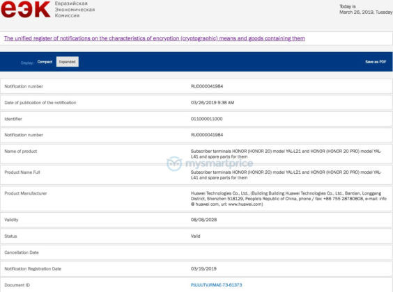 Huawei a fost foarte activă în ultima vreme, lansând câteva terminale noi chiar şi înainte de debutul lui P30 Pro. Ei bine, astăzi aflăm că ne mai pregăteşte încă o serie de modele noi, care au fost certificate în Europa recent. E vorba despre Honor 20, Honor 20 Pro, Huawei P Smart Z şi Huawei Y5 (2019). Aceste terminale au primit certificarea autorităţii EEC şi avem detalii despre ele în următoarele rânduri.