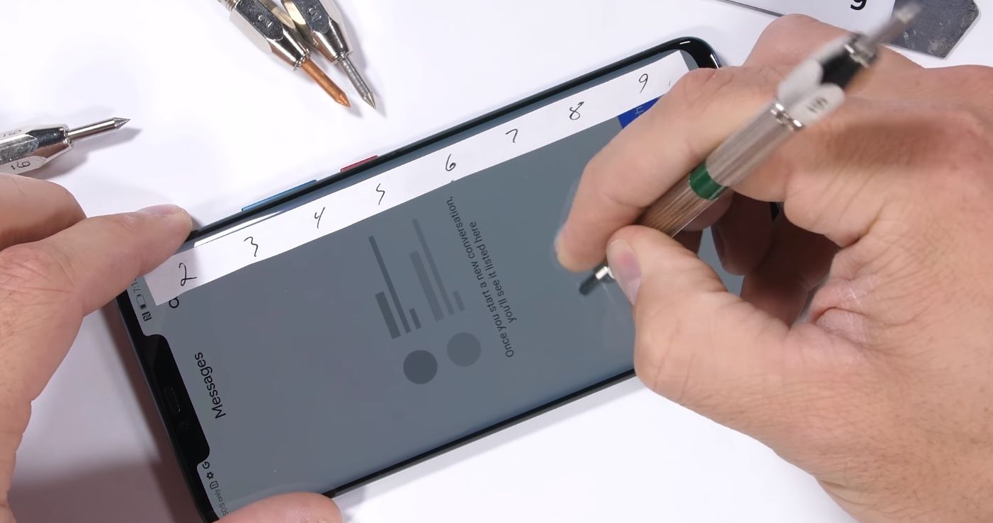 Huawei Mate 10 Pro era mult mai rezistent decât Mate 20 Pro la acest test. Jerry a afirmat şi că e posibil ca zgârierea panoului frontal cu acel vârf ascuţit să îl fi slăbit. Posibil ca şi curbarea sticlei peste colțuri să fi slăbit structura. Nici cititorul de amprente nu mai funcţionează după ce ecranul crapă, senzorul fiind integrat în ecran.