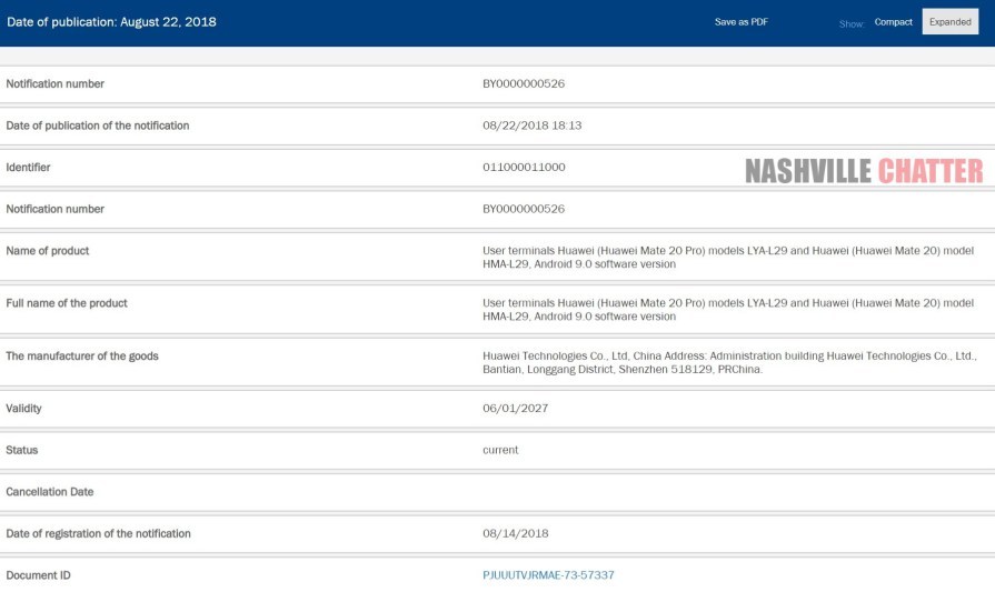 La câteva zile distanță de la dezvăluirea unor randări în premieră cu Huawei Mate 20 iată că descoperim și o certificare a acestui dispozitiv, dar și a variantei sale Pro. Documentele vin din partea EEC pe plan european și confirmă faptul că cele două noi smartphone-uri vor rula din fabrică sistemul de operare Android 9.0 Pie alături de interfața EMUI 9.0 despre care am auzit de curând că va ajunge a fi prezentată la IFA.