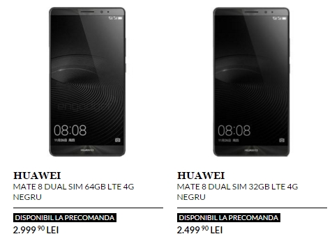 Recent lansat pe piața din China, phablet-ul Huawei Mate 8 ajunge iată și pe plan local prin intermediul celor de la QuickMobile.ro, retailer ce vinde atât variantele cu 32 GB și 64 GB spațiu intern de stocare. De reținut faptul că telefonul este disponibil în regim de pre-comandă la ora actuală.