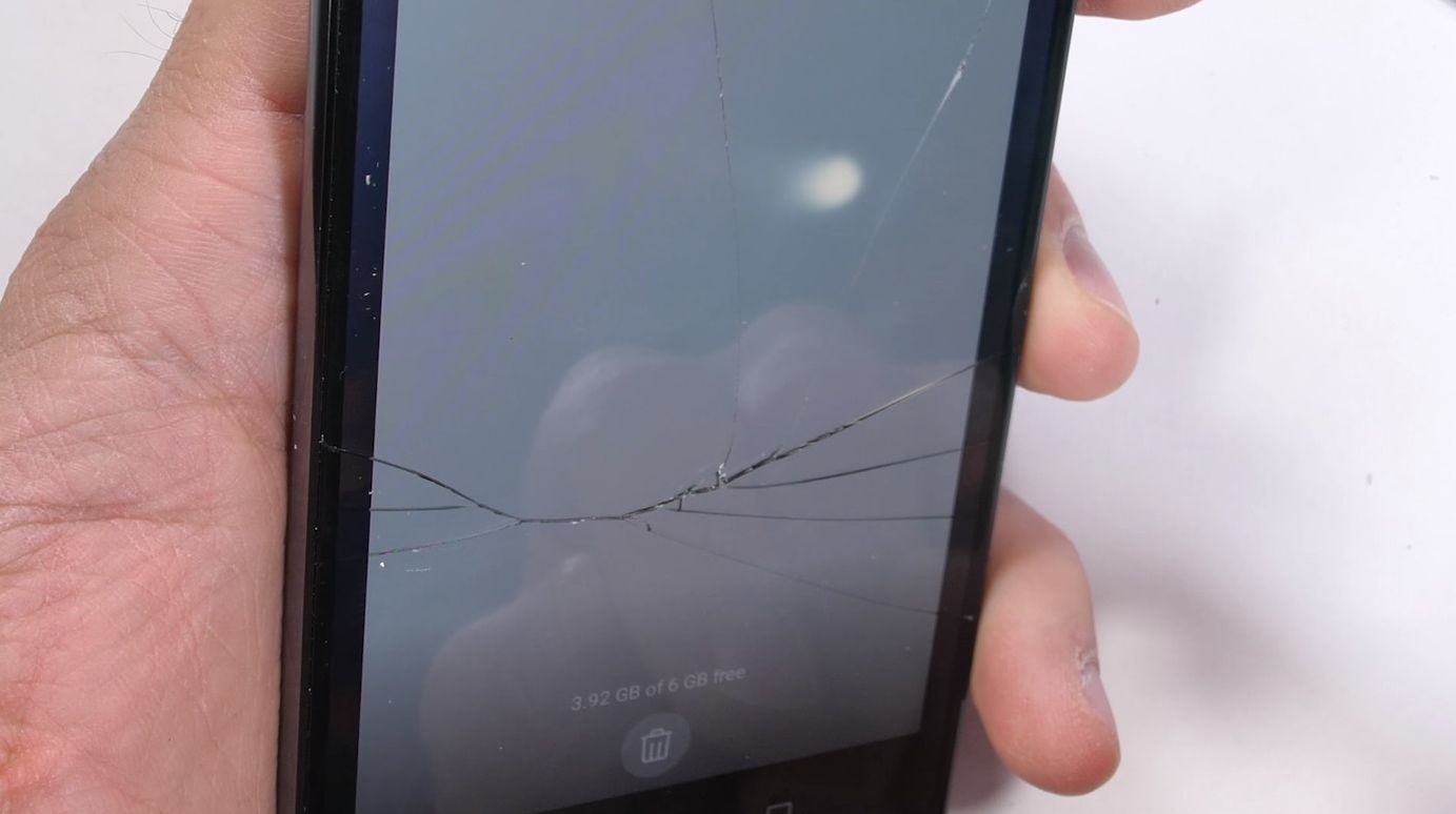 Şi asta fără ca YouTuberul să se forţeze excesiv la indoire, iar sticlă frontală se crapă serios. Jerry a descoperit că de fapt ecranul s-a crăpat în zona unde îl zgâriase cu acele vârfuri ascuţite de test, deci ele îl slăbiseră în prealabil. Practic în viaţa de zi cu zi va trebui să zgâriaţi ca lumea ecranul şi apoi să îl îndoiţi pentru a îi crapa panoul frontal, un scenariu cam rar şi cam improbabil.