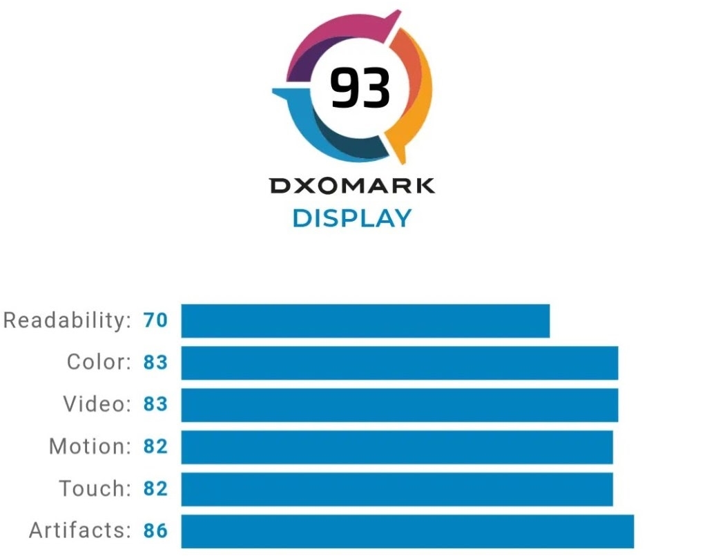 Cu acest scor îl depășește pe Galaxy S21 Ultra cu 2 puncte, iar pe OnePlus 9 Pro cu 4 puncte. iPhone 12 Pro Max e mai în spate cu 5 puncte. Criteriile testate de francezi includ lizibilitate, culoare, video, mișcare, atingere și artefacte. Testele au arătat un salt însemnat la experiență video față de Huawei P40 Pro și o performanță excelență per total. Doar în 2 zone se mai poate umblă: luminozitatea la exterior și artefactele blending. Experiență de vizionare HDR este satisfăcătoare, răspunsul la atingeri e rapid și precis și flicker-ul lipsește aproape total.
