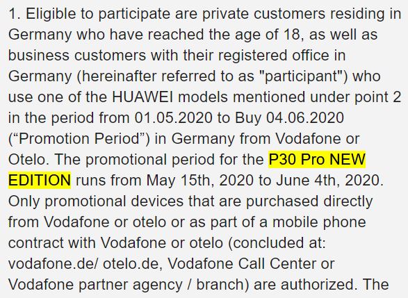 Se pare că Huawei ar fi pregătit şi un Huawei P30 Lite NEW EDITION, iar acum apare şi un P30 Pro NEW EDITION. Informaţia vine de la Huawei Germania, care scrie că Huawei P30 Pro cel nou va fi disponibil între 15 mai şi 4 iunie, printr-o ofertă promoţională specială. Telefoanele acestea vor sosi cu Google Play Store şi Google Mobile Services, dar în rest nu par să apară schimbări la capitolul dotări. Ştim că Huawei a mai actualizat seria P30 cu noi culori la IFA 2019, cu nuanțele Mystic Blue şi Mystic Lavender, cu acel spate bitonal.