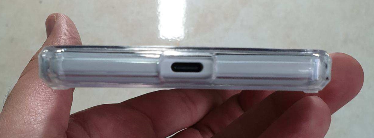 Jos în schimb portul USB Type-C este perfect aliniat cu decupajul său. Sus totuşi apare o schimbare importantă şi anume amplasarea microfonului. Pe Pixel 2 XL acest mecanism se află înspre stânga, dar pe modelul 2018 este în dreapta. Astfel, husa acoperă complet microfonul pe Pixel 2 XL. Butonul Power încape în locaşul accesoriului, dar cu ceva efort, în vreme ce butoanele de volum ar rămâne apăsate cu husa pusă (cel puţin cel de volum jos).