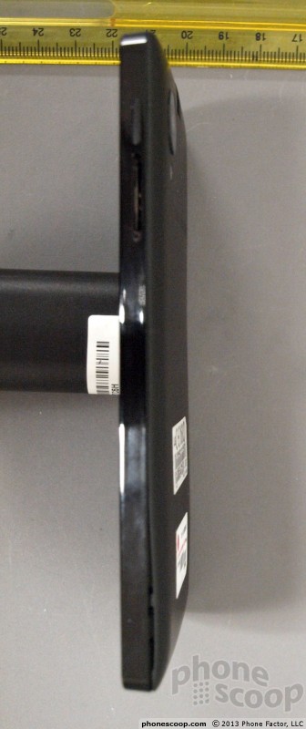 Spatele acestui device aduce cu un material soft touch, iar telefonul pare destul de gros, cel puțin în aceste imagini. Zona frontală aduce foarte mult cu cea a lui LG Nexus 4, dar spatele mă duce cu gândul mai degrabă la un HTC decât la un LG. Observăm în spate prezența unei mici "ferestre", poate destinată pentru implementarea unui mecanism pentru scanarea amprentelor.