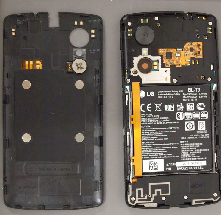 Din imaginea de mai sus aflăm și faptul că Nexus 5 va avea spatele detașabil, însă nu va dispune de card micro SD, cel puțin noi nu am băgat de seamă indicii legat de acest aspect. Observăm pe capacul din stânga semne cum că handsetul va oferi funcția de reîncărcare wireless, dar și conectivitate de tip NFC. Vă las pe voi să veniți și cu alte observații! Partea de comentarii si forumul vă stau la dispoziție!