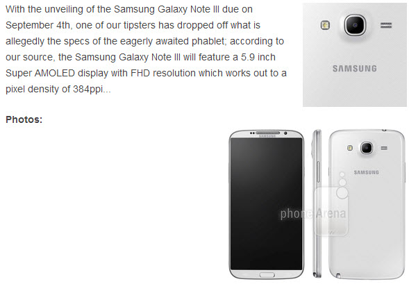 în această dimineață cei de la Phone Arena au postat un articol în care prezentau o imagine cu ceea ce părea a fi Samsung Galaxy Note 3. Dintr-un motiv sau altul ei au șters postarea, dar cache-ul nu minte și fotografia e foarte interesantă.