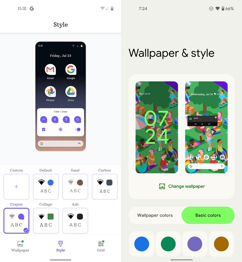 Acesta susține că vechile opțiuni (font, forma pictogramelor, icon pack și culoarea de accent) sunt înlocuite în Android 12 de sistemul dinamic de teme. Google crede că acesta este mult mai modern și inteligent, alegând în mod automat culorile în funcție de wallpaper-ul ales. De asemenea, este o modalitate de personalizare care îmbunătățește experiența prin simplitatea sa.