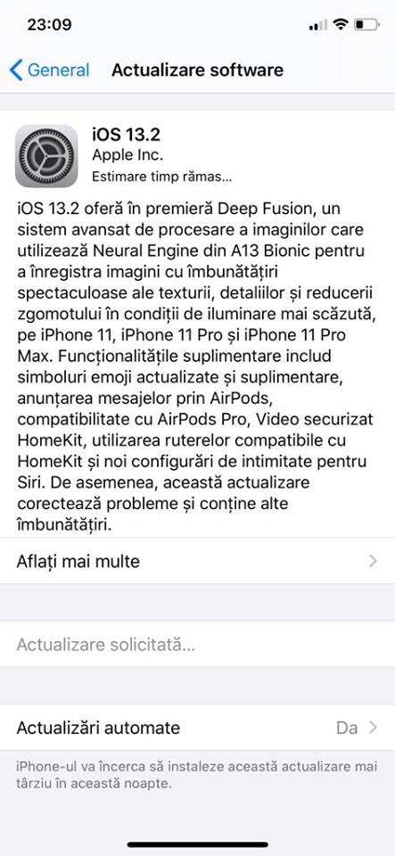 Finalul lunii octombrie ne aduce iată o nouă actualizare de sistem din partea celor de la Apple, fiind vorba despre iOS 13.2 - release ce se distribuie în momentul de față pe iPhone-urile și iPad-urile compatibile. Avem câteva noutăți interesante pe această listă, precum suportul Deep Fusion pe ultimele modele de telefoane, noi emoji-uri, dar și o noutate pentru utilizatorii iPhone din rețeaua Digi Mobil.