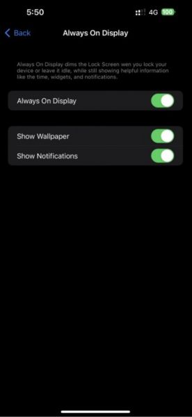 Utilizatorii de iPhone 14 Pro și 14 Pro Max care au iOS 16.2 (Beta 3) instalat, au descoperit această nouă zonă în setări. Include doar două opțiuni momentan. Putem ascunde wallpaper-ul acum, ecranul devenind complet negru, doar ceasul fiind vizibil în mod AOD. Mai jos avem o opțiune prin care putem dezactiva notificările, în cazul în care nu dorim ca acestea să apară în modul AOD.