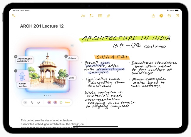 Mai primim și funcția Image Wand în Notes, care ne permite să transformăm schițele în imagini arătoase. Aici vom încercui o parte dintr-o notiță și astfel crea imagini care completează textul, folosind stiluri precum Animație, Ilustrație sau Schiță.