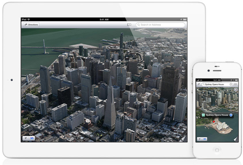 Totuși cireașă de pe tort a fost nouă soluție Maps, care îl înlocuiește pe Google Maps. Noul Maps listează peste 100 de milioane de afaceri, puncte de reper și de interes pe hartă. Avem și o căutare locală mai amplă, navigare turn by turn, afișarea ambuteiajelor și o grafică 3D de excepție. Putem vedea live cum se schimbă traficul în anumite regiuni și ce incidente îl afeceteaza. în zona de turn by turn avem și un timp estimat de sosire și opțiuni pentru rute variate.