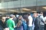 Fie pe scaune pliante, pe jos sau pe ziare, fanii Apple stăteau și stăteau... unii chiar de multe ore, după cum ne informează Alin. Acesta a fost prezent la această așteptare colectivă timp de o oră și jumătate, urmând apoi ca ușile să se deschidă și să se facă primele vânzări ale tabletei. Cei participanți la lansare au primit cafea și ceai din partea Apple.