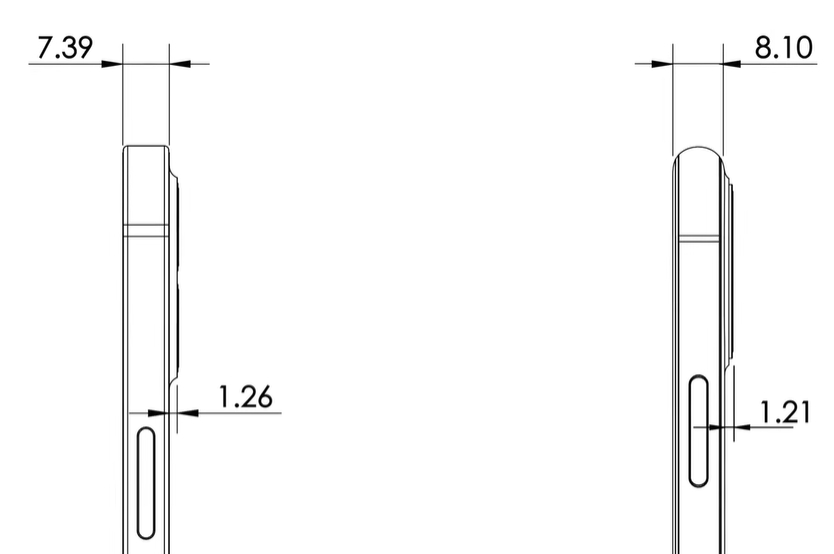 Mai aflăm că muchiile panoului frontal măsoară acum doar 1.55 mm în grosime vs. 2.52 mm pe iPhone 11 Pro Max, modalitate prin care se contribuie la o creștere a raportului corp-ecran. O altă schimbare este reprezentată de către trecerea la o carcasă cu muchii plate ca pe iPhone 5s, dar și renunțarea la ecranul cu sticlă 2.5D. Totul va fi plat și astfel se ajunge și la o reducere a taliei.