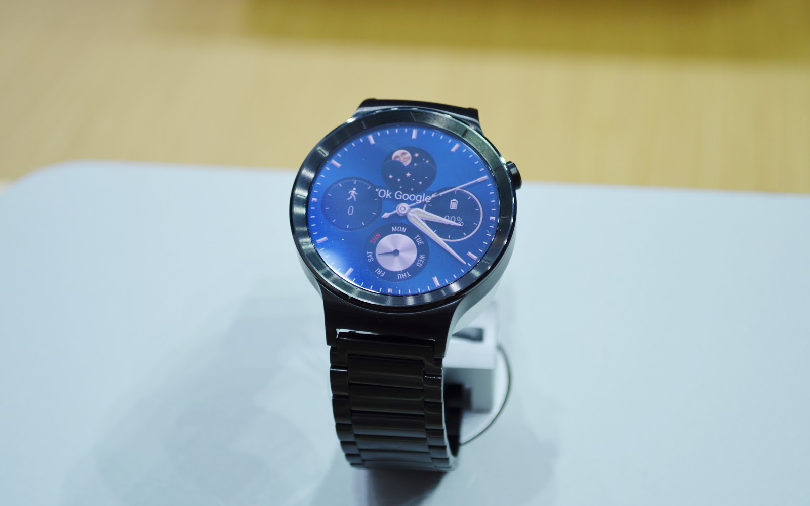 Ceasurile au fost apoi pe listă, show-ul IFA fiind gazda a numeroase astfel de device-uri. Am început cu Huawei Watch, un model foarte elegant cu Android Wear la bord ce sosește în diferite variante cu fel și fel de curele din metal, piele, sau cauciuc. Ce mi-a plăcut în mod special a fost faptul că design-ul de ceas clasic este păstrat.