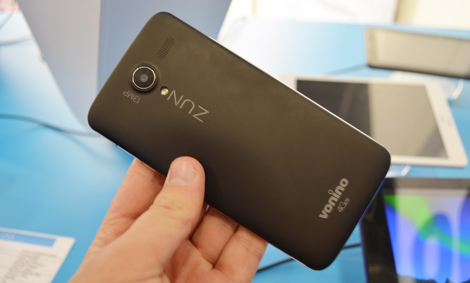 La stand erau afișate două versiuni, atât modelul pe negru cu spate mat, dar și varianta albă cu spate glossy. Alte dotări pe care Vonino ZUN XO le aduce sunt reprezentate de către o cameră foto principală de 13 megapixeli cu bliț LED, de un senzor frontal de 5 megapixeli și de către sistemul de operare Android 5.1 Lollipop.