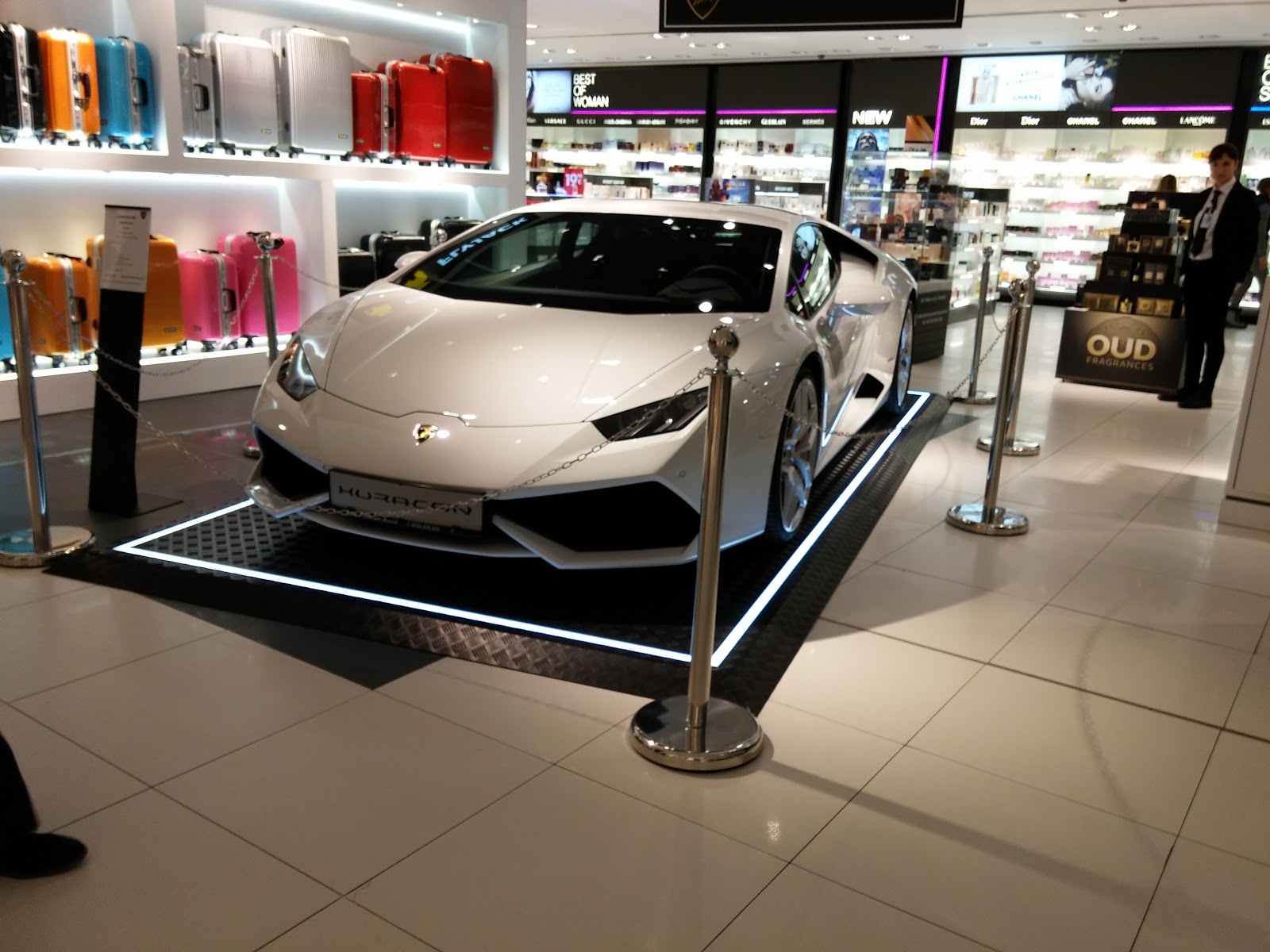 Ajuns la aeroport, m-am îndreptat către poarta de checkin a bagajelor, loc în care am dat de un grup co-naționali de-ai noștri ce se îndreptau spre Barcelona sub forma unei trupe de lăutari dubioase ce avea planuri mari pentru seara ce tocmai a trecut. După acest moment am făcut cunoștiință și cu un exponat surpriză în Otopeni, mai exact cu Lamborghini Huracan, bolidul din imaginea de mai sus.